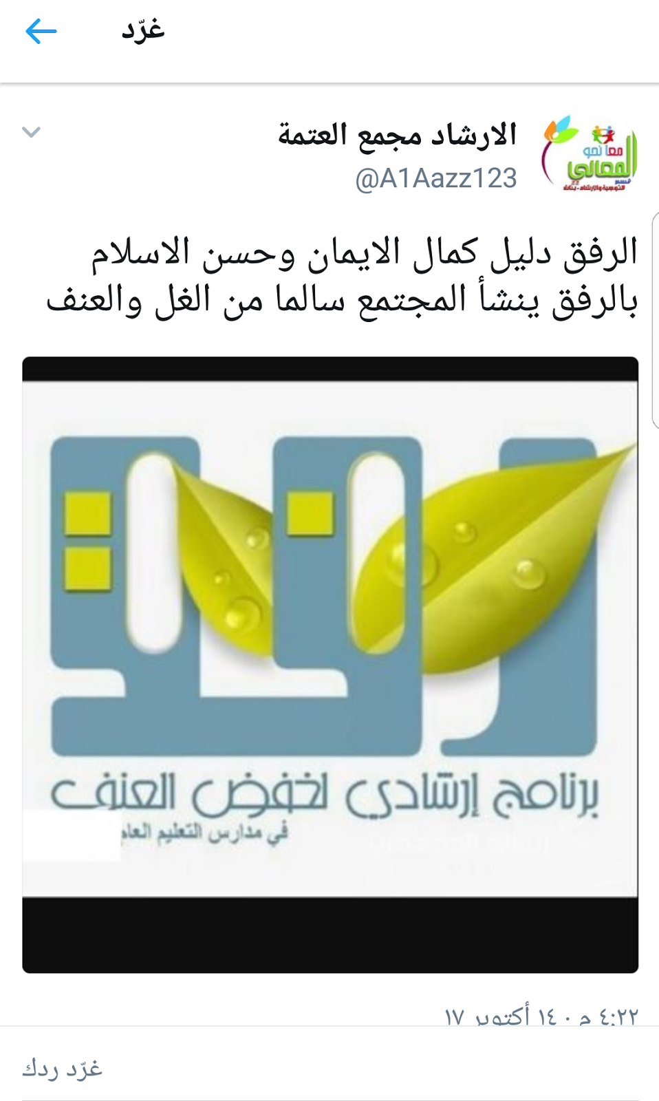 برنامج رفق لخفض العنف في مدارس التعليم العام مجمع العتمة التعليمي مكتب التعليم بالعرضية الجنوبية إدارة التعليم بالقنفذة